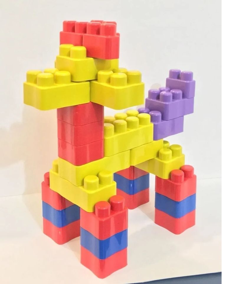 Blocos de montar, bordas superiores totalmente arredondadas e muito bem-acabadas, material colorido, atóxico com alto brilho.
