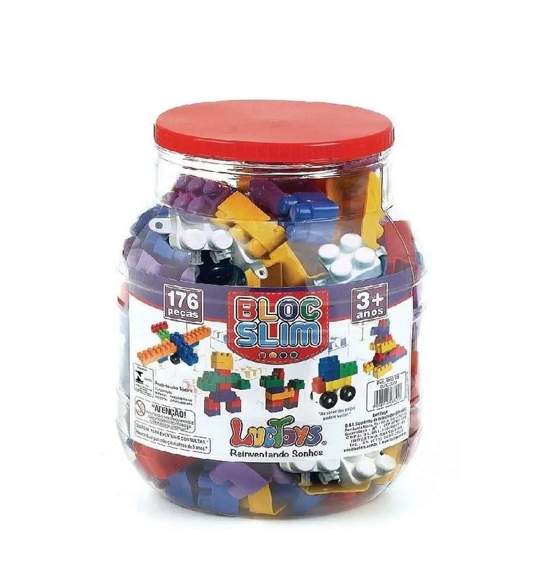 Estimula a criatividade e a imaginação das crianças, são 176 peças de tamanhos variados e cores sortidas.