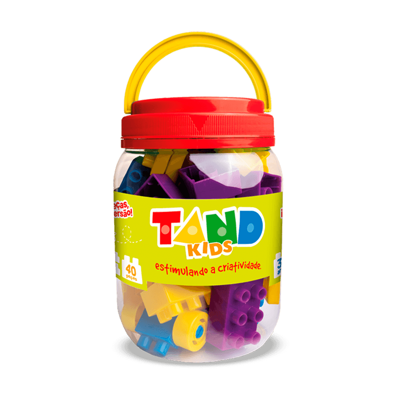 Um pote com 40 peças coloridas de tand kids que podem ser montado de várias formas. Ideal para estimular a criatividade e raciocínio das crianças.