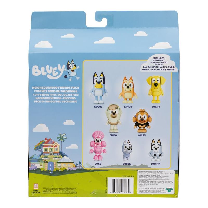 Traga a brincadeira divertida de Bluey e seus amigos para casa com esse adorável conjunto de figuras Bluey! Bluey, Bingo, Lucky, Judo, Missy, Coco, Socks e Muffin estão incluídos neste incrível conjunto! Essas figuras são ótimas para recriar alguns dos momentos mais memoráveis do desenho com estes brinquedos incríveis! A brincadeira ficará muito mais divertida com o 8 Figure Multipack da Bluey!