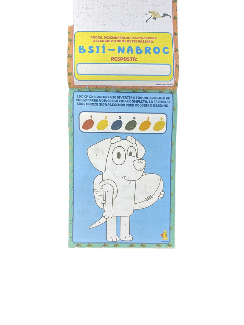 Prepare-se para se divertir com Bluey e Bingo em novas aventuras emocionantes neste livro cheio de atividades superlegais! E adivinha? Também tem adesivos super legais para você colar onde quiser e deixar tudo ainda mais divertido! Vamos lá, a diversão está só começando!