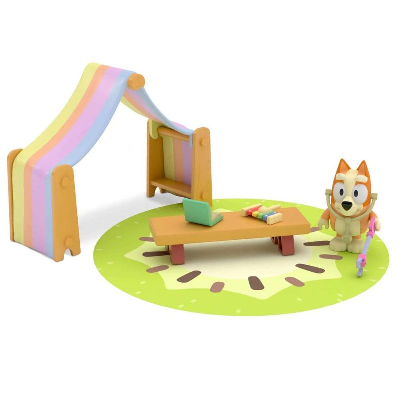 Bluey Story Mini Playset Bingo's Playroom - Candide Divirta-se com estes lindos Mini Park Playsets! Todas as figuras incluídas têm braços e corpo articulado para que possam enfrentar todos os tipos de aventuras! Os playsets são compatíveis com todas as figuras Bluey. Inmetro: 005850/2022