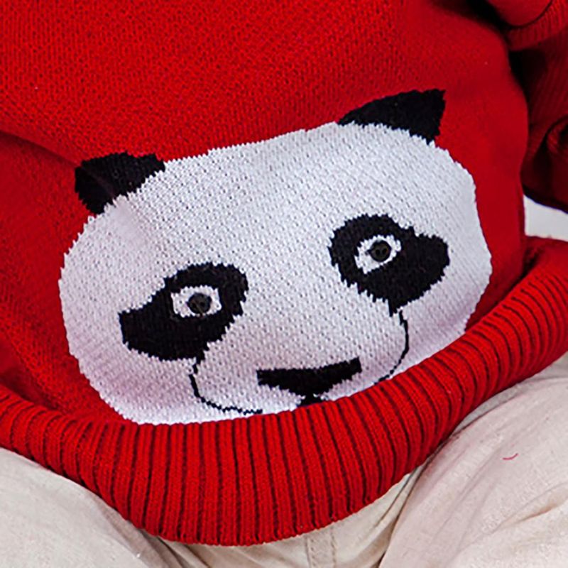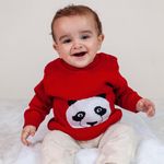 Blusa Tricô Kids de Bebê Com Panda de Tricô Vermelho