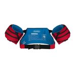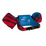 O design combina flutuadores nos braços e suporte no peito, ajudando a manter a criança estável e na posição correta dentro da água. O fecho traseiro ajustável com trava de segurança garante encaixe firme e evita que o colete se solte durante o uso.