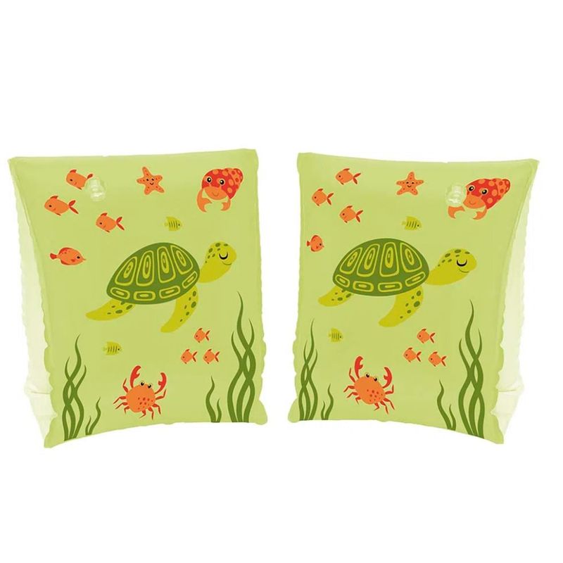 Com estampa de desenhos aquáticos, as Boias de Braço da Mor possuem três opções de cores: azul, rosa e verde. Possuem duas câmaras de ar independentes, o que dá mais segurança para os pequenos, pois em caso de furo ou esvaziamento acidental de uma delas, a outra câmara garante sua estabilidade na água. Contém também duas válvulas de segurança e adesivo reparo. Recomendadas para crianças entre 3 a 6 anos, suportam até 30 Kg. Atenção! Este não é um equipamento salva-vidas. Nunca deixe crianças sozinhas perto da água sem supervisão de um adulto.