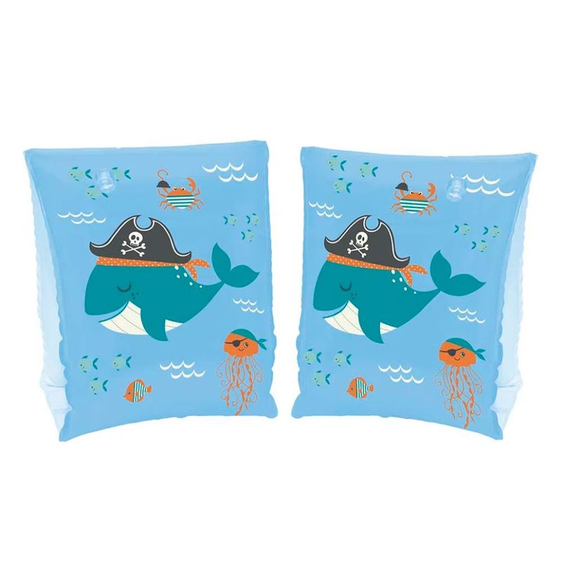 Com estampa de desenhos aquáticos, as Boias de Braço da Mor possuem três opções de cores: azul, rosa e verde. Possuem duas câmaras de ar independentes, o que dá mais segurança para os pequenos, pois em caso de furo ou esvaziamento acidental de uma delas, a outra câmara garante sua estabilidade na água. Contém também duas válvulas de segurança e adesivo reparo. Recomendadas para crianças entre 3 a 6 anos, suportam até 30 Kg. Atenção! Este não é um equipamento salva-vidas. Nunca deixe crianças sozinhas perto da água sem supervisão de um adulto.