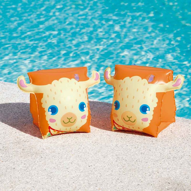 A nova Boia de Braço Lhaminha chegou para proporcionar divertidos dias de calor à criançada. Além de ser fácil de ajustar, ela permite livre movimento dos braços e das pernas, deixando o banho de piscina ainda mais alegre. Possui 2 câmaras de ar independentes e 2 válvulas de segurança, oferecendo maior comodidade e segurança durante as brincadeiras na água. Recomendadas para criançasa partir de 3 anos, suporta até 30 Kg. Atenção! Este não é um equipamento salva-vidas. Nunca deixe crianças sozinhas perto da água sem supervisão de um adulto.