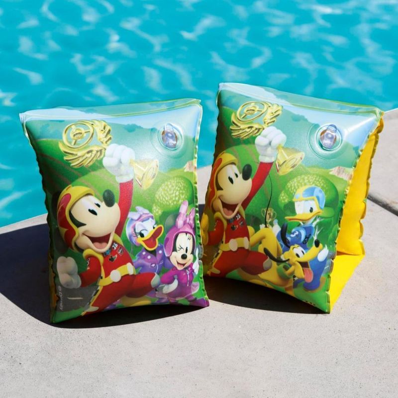 Boia de braço Inflável Mickey · Material resistente, confeccionado em PVC · Com válvula de segurança · Possui 2 câmaras de ar · Dimensões: 23 cm x 15 cm · Peso recomendado: 18 à 30 Kg · Idade recomendada: 3 à 6 anos