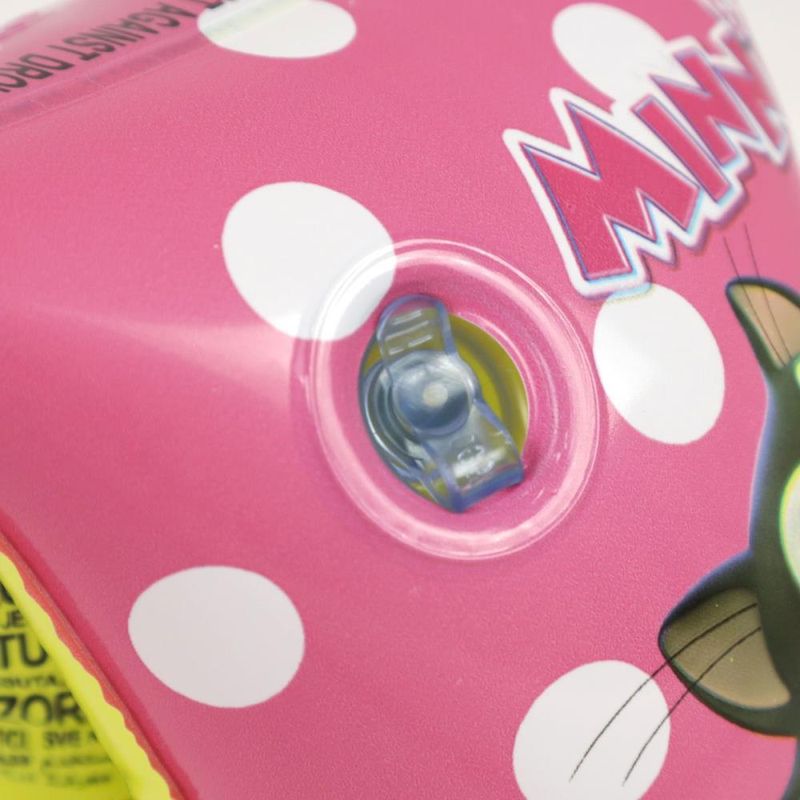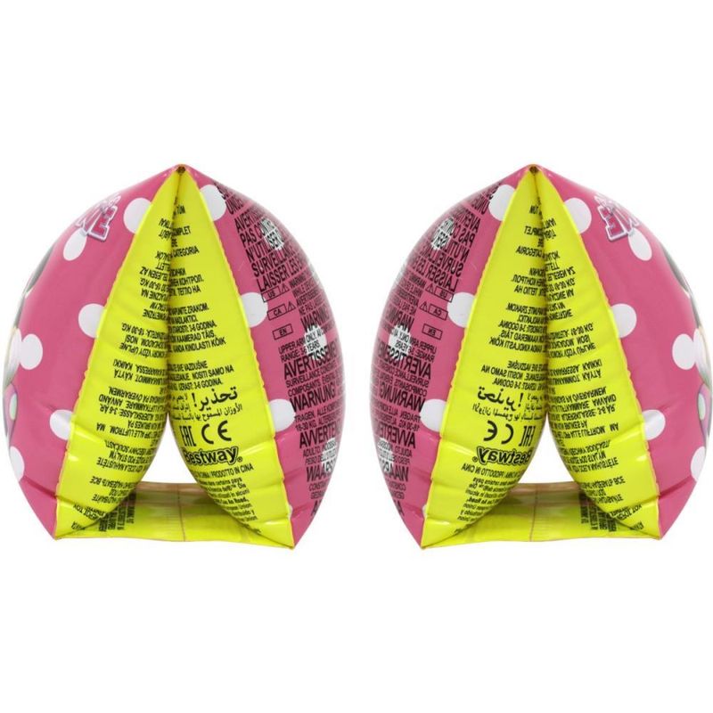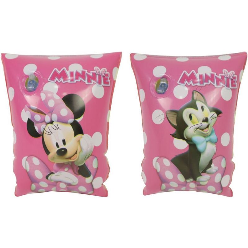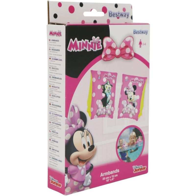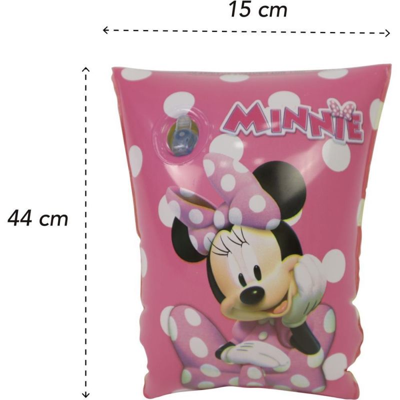 Boia de braço Inflável Minnie, Material resistente, confeccionado em PVC com válvula de segurança. Possui 2 câmeras de ar. Dimensões: 23cm x 15cm. Peso recomendado: 18 à 30 Kg. Idade Recomendada> 3 à 6 anos.