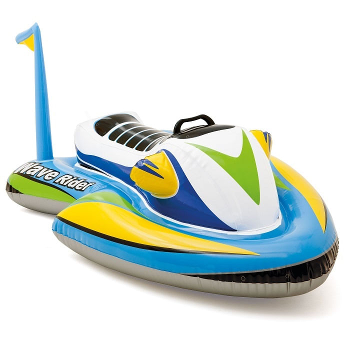 A boia Jet Ski é um produto da Intex de alta qualidade e vem em formato especial para dar adrenalina à brincadeira.