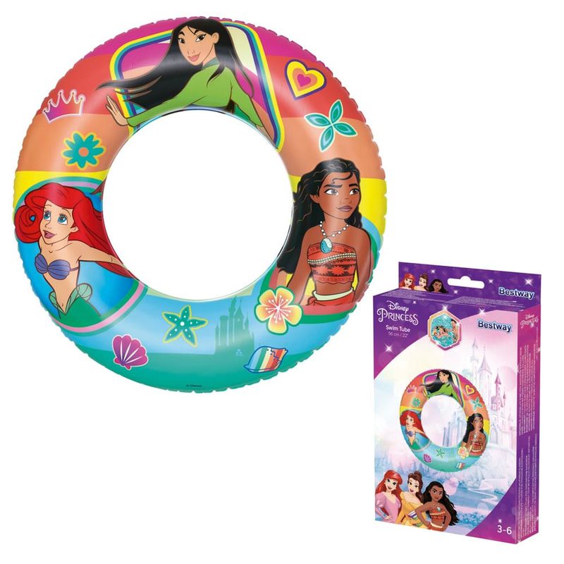 Estampada com as princesas da Disney, a Boia Redonda Princesas chegou para encher de magia o verão da garotada! Produzida em vinil resistente, conta com uma câmara de ar independente e uma válvula de segurança. Pode ser levada desinflada para qualquer lugar, ocupando pouco espaço e garantindo a diversão da criançada. São recomendadas para crianças de 3 a 6 anos. Atenção! Este não é um equipamento salva-vidas. Nunca deixe crianças sozinhas perto da água sem supervisão de um adulto.