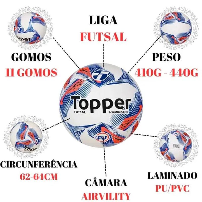 Junte os amigos e divirta-se nas peladas de final de semana com a Bola Topper Futsal Dominator Laranja Azul, desenvolvida para jogos indoor com alto desempenho. Fabricada em material resistente, a bola garante excelente durabilidade mesmo após várias partidas. Sua estrutura favorece controle preciso, toque suave e boa resposta nos passes e chutes. A combinação de cores vibrantes em laranja, azul e preto facilita a visualização em quadra, otimizando o ritmo de jogo e a troca de passes entre os jogadores.Com design funcional e estiloso, a Bola Topper Futsal Dominator Laranja Azul Preto é ideal para quem busca qualidade, performance e estilo em quadra.OBS A bola pode vir com a calibragem alterada. Portanto, antes de utilizá-la, verifique e, se necessário, regule. Especificações Técnicas: Laminado: PU Câmara: Airvility Gomos: 11 Peso: 410-440g Circunferência: 62-64 cm Calibragem recomendada: 7-9 libras