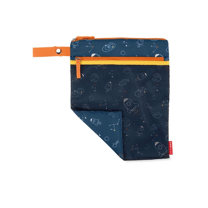 Bolsa Infantil Impermeável para natação, viagens e praia. Com bolso externo para roupas secas e estampa divertida de Espaço!