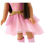 Boneca Ashlyn de que tem o tamanho certo para meninas mais novas. Ela tem olhos castanhos, bochechas sardentas e longos cabelos castanhos sedosos que podem ser escovados e penteados.