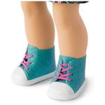 The Show Your Wild Side Outfit Um vestido de camiseta preta com coração divertido Estrela E gráficos de unicórnio Um par de cuecas E um par de tênis de cano alto Aqua Glitter com cadarço rosa.