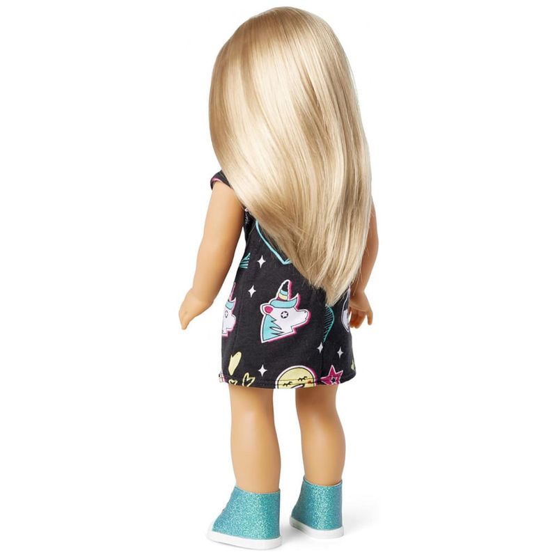 A boneca Truly Me de tem olhos realistas que abrem e fecham suavemente cabelo realista que pode ser estilizado um corpo de algodão macio e uma cabeça móvel e membros feitos de vinil liso.