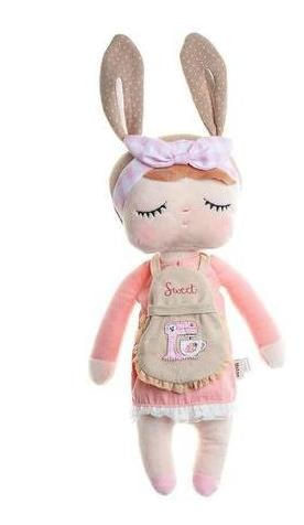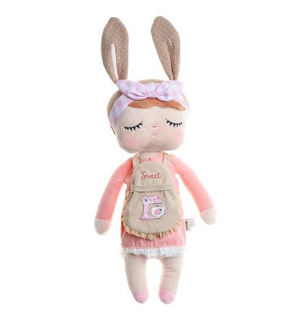 A Boneca Metoo Angela Chef tem olhos sonolentos, bochechas rosadas, orelhas de coelho e um vestido fofo com avental de Chef.