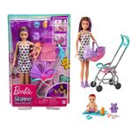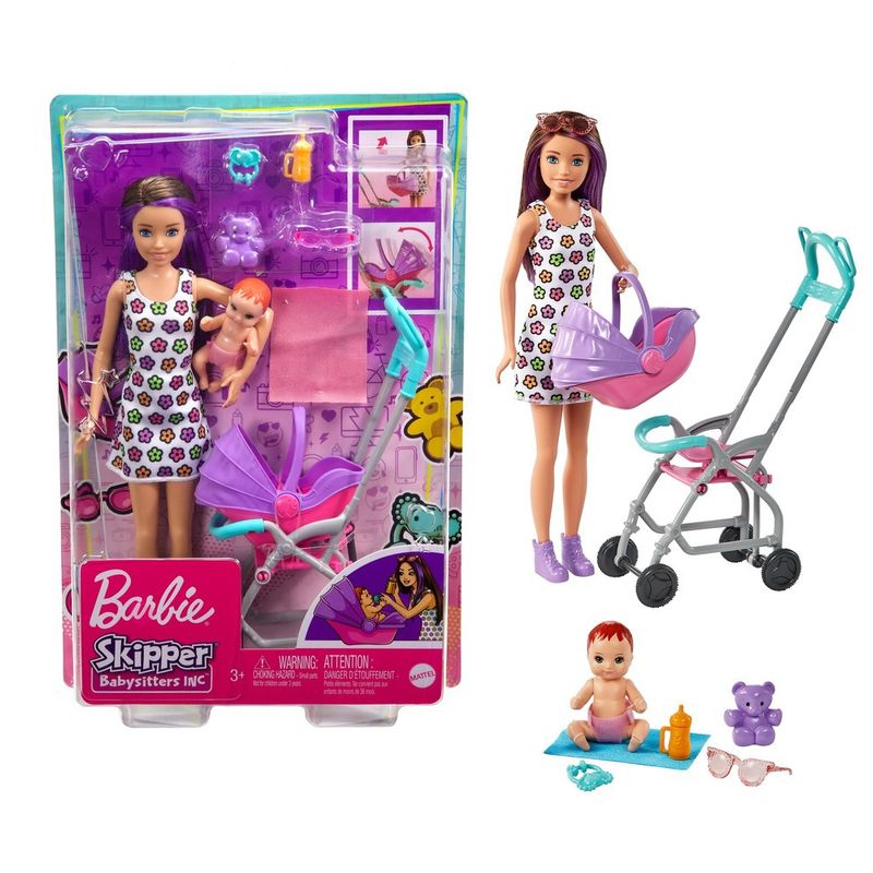 Os conjuntos de brinquedos Barbie Skipper Babysitters Inc. permitem que a imaginação explore seu lado carinhoso como babá. Com este playset, as crianças podem ajudar a boneca Skipper a cuidar de uma boneca em um adorável carrinho que salta para cima e para baixo enquanto é empurrado! Com acessórios, incluindo um smartphone, ursinho de pelúcia, mamadeira, chocalho e cobertor de bebê, a boneca Skipper tem tudo o que ela precisa para um dia bem-sucedido de babá. Crianças de 3 anos ou mais podem colecionar outras bonecas e acessórios Babysitters Inc. para preencher uma agenda de babá cheia de diversão! Cada um vendido separadamente, sujeito a disponibilidade. Bonecas não podem ficar sozinhas. Cores e decorações podem variar.
