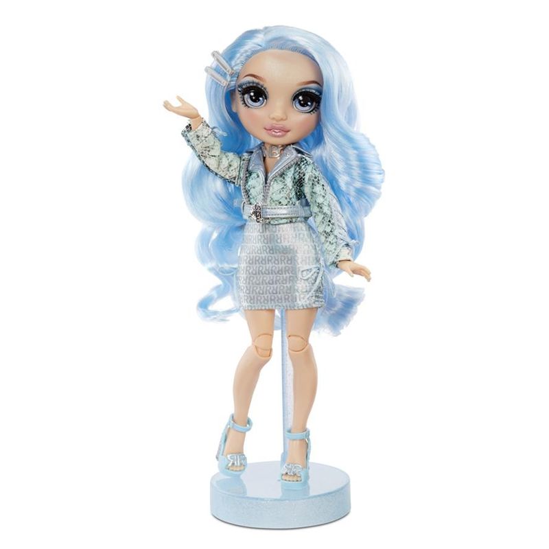 Com design único, esta personagem de RAINBOW HIGH está vestida de com um look deslumbrante da cabeça aos pés. Ela tem lindos traços detalhados em sua moda, lindos cabelos coloridos, cílios longos e olhos de vidro. Inclui 2 roupas de boneca completas, sapatos de boneca e acessórios de boneca. Vista-a em cada look, depois misture e combine as roupas e acessórios para estimular a imaginação e a diversão de contar histórias. Ela é totalmente articulada possibilitando várias poses, seus braços e pernas dobram para tantas poses glamorosas ou você pode exibi-la no suporte de boneca incluído.