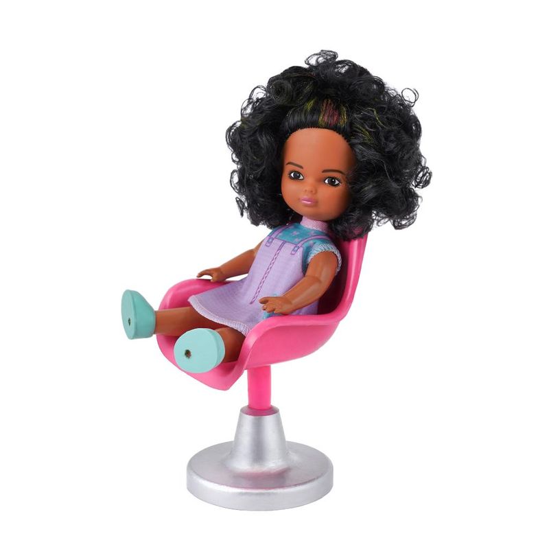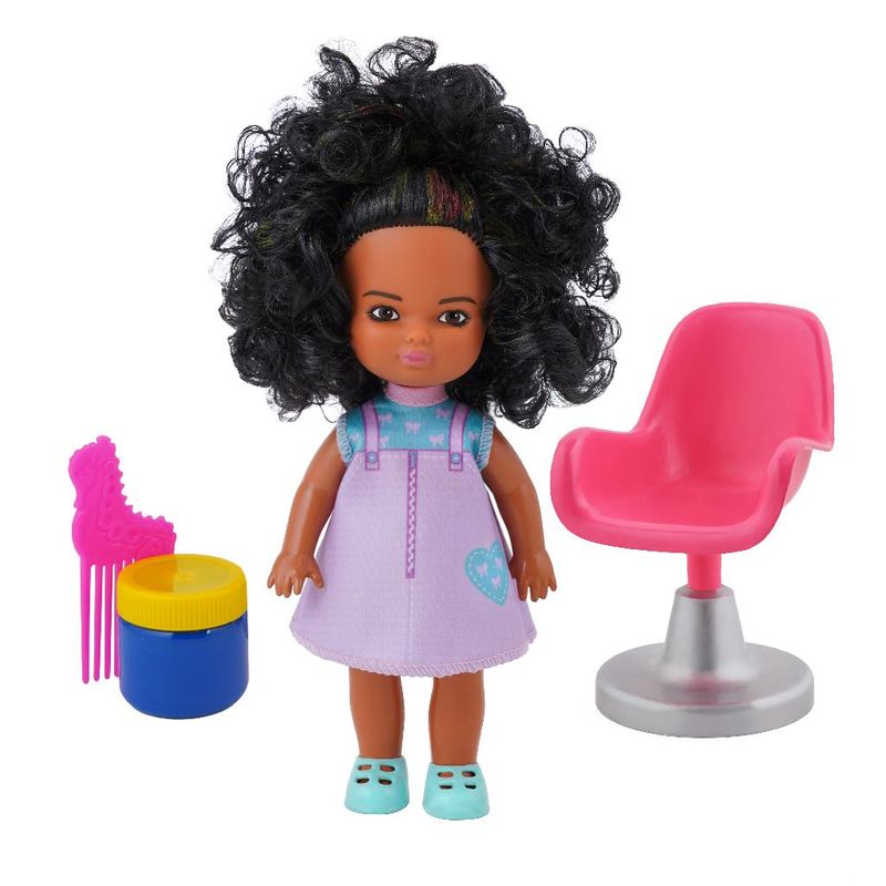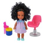 Ela adora pintar o cabelo! Com tema salão de cabeleireiro, acompanha uma cadeira de salão, tinta e pincel para a criança brincar de pintar o cabelo Um verdadeiro salão de beleza! Funcionalidades : Pintura do cabelo da boneca.