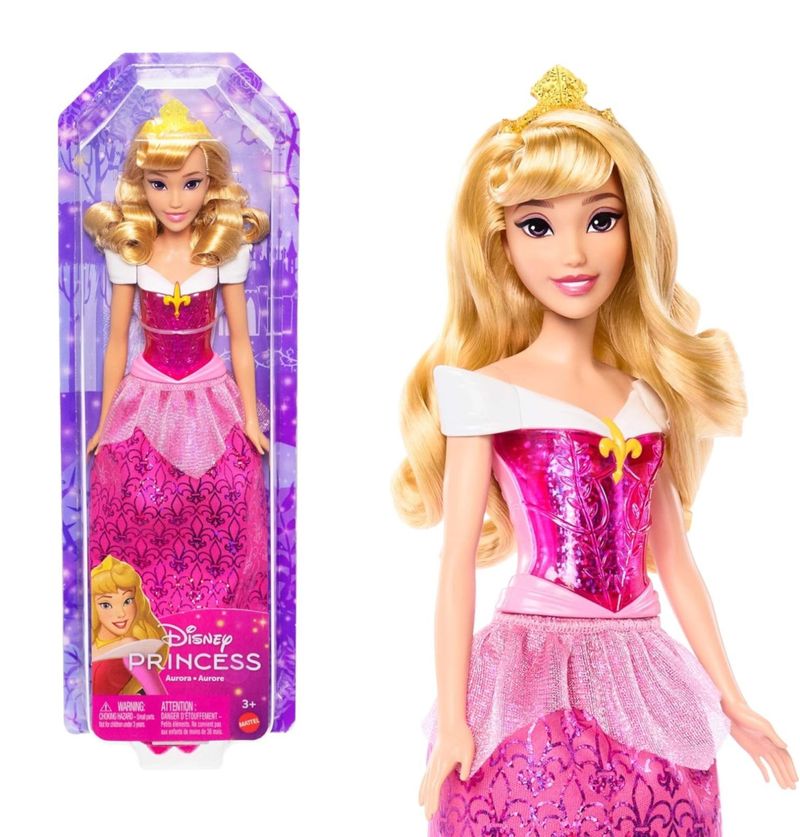 Princesa Aurora - A Bela Adormecida Fabricante: Mattel. Coleção: Princesas Disney Altura da boneca: Aproximadamente 30 cm. Conheça esta boneca Princesa Aurora da Disney, inspirada na heroína otimista e imaginativa do adorado filme A Bela Adormecida da Disney! Esta boneca fashion articulada é apresentada com uma roupa brilhante e acessórios que incluem sapatos e uma tiara. Com seu visual característico inspirado no filme, esta boneca Aurora está pronta para qualquer aventura! A boneca não fica em pé sozinha. As cores e decorações podem variar.