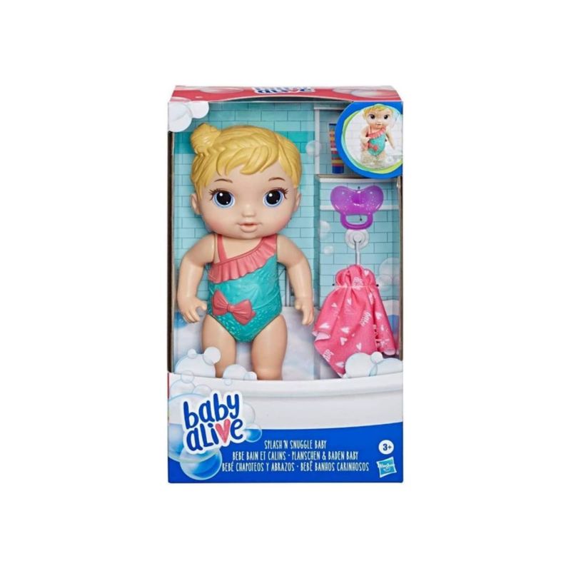 Conteúdo: 1 Boneca Baby Alive Banhos Carinhosos (Splash ‘n’ Snuggle Baby) Loira, com 2 acessórios (toalha e chupeta).