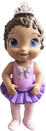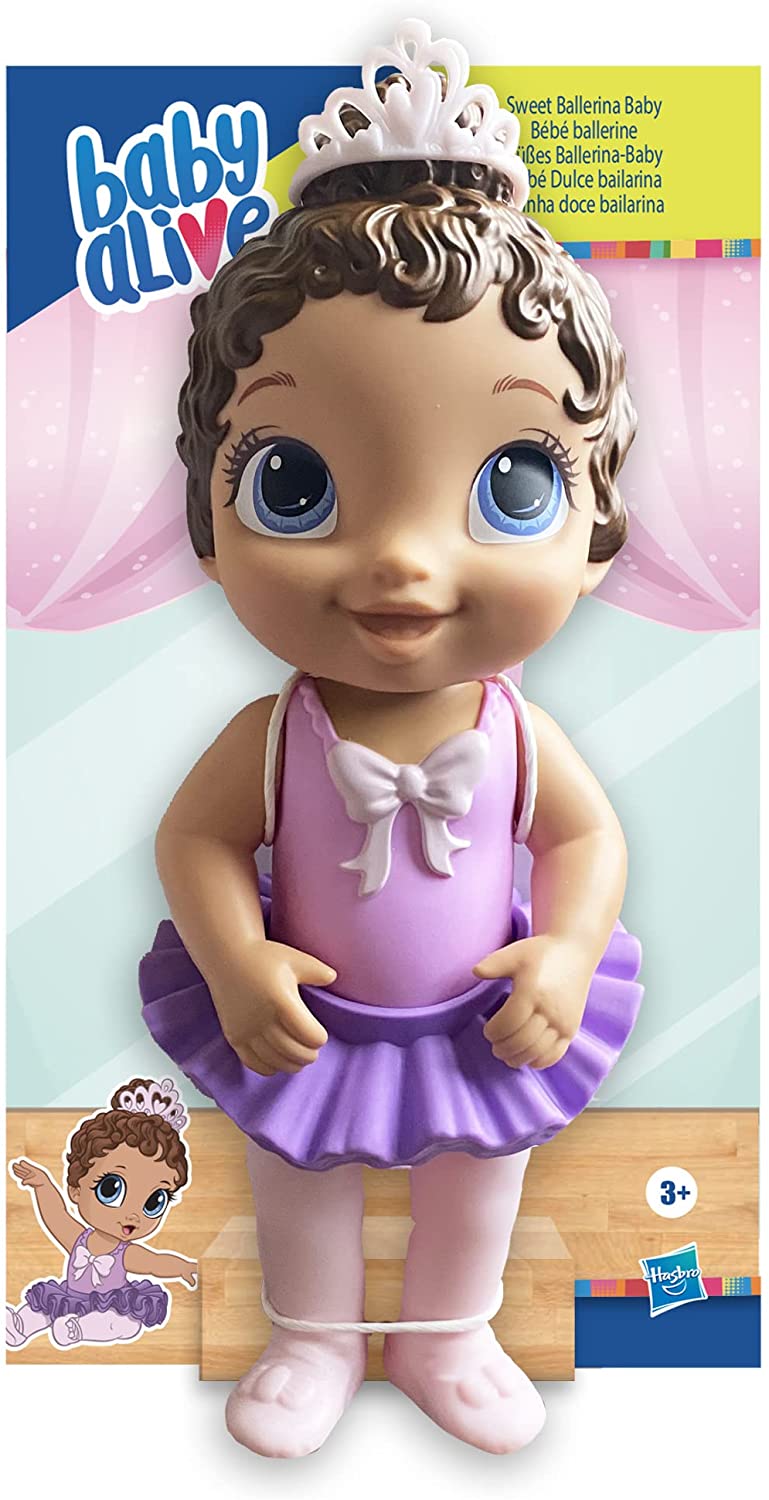Esta linda dançarina está pronta para a aula de balé. As crianças podem imaginar lindos passos de dança com esta boneca bebê Baby Alive Minha doce bailarina traje roxo moldado: Esta boneca de 26,5 cm vem com um traje roxo moldado como uma bailarina. A boneca bebê Minha doce bailarina vem pronta para uma aula de dança saia tutu E tiara removíveis: As crianças a partir dos 3 anos podem vestir a boneca com acessórios de balé como saia de bailarina e tiara. boneca articulada para meninos E meninas: A boneca bebê Baby Alive Minha doce bailarina é um presente adorável para crianças que gostam de dançar.
