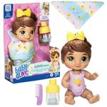 DESCRIÇÃO: As crianças irão se divertir na hora do banho com sua nova amiga Baby Alive Bebê Shampoo! As crianças podem inclinar o frasco para ver as bolhas de mentirinha subirem e descerem! Pode ser usado vazio, com água ou shampoo infantil. As crianças podem brincar de criar penteados com o pente e laço removível. Enrolar a boneca na toalha macia com fechos para encaixar. As bonecas Baby Alive são um excelente presente para crianças a partir dos 3 anos.
