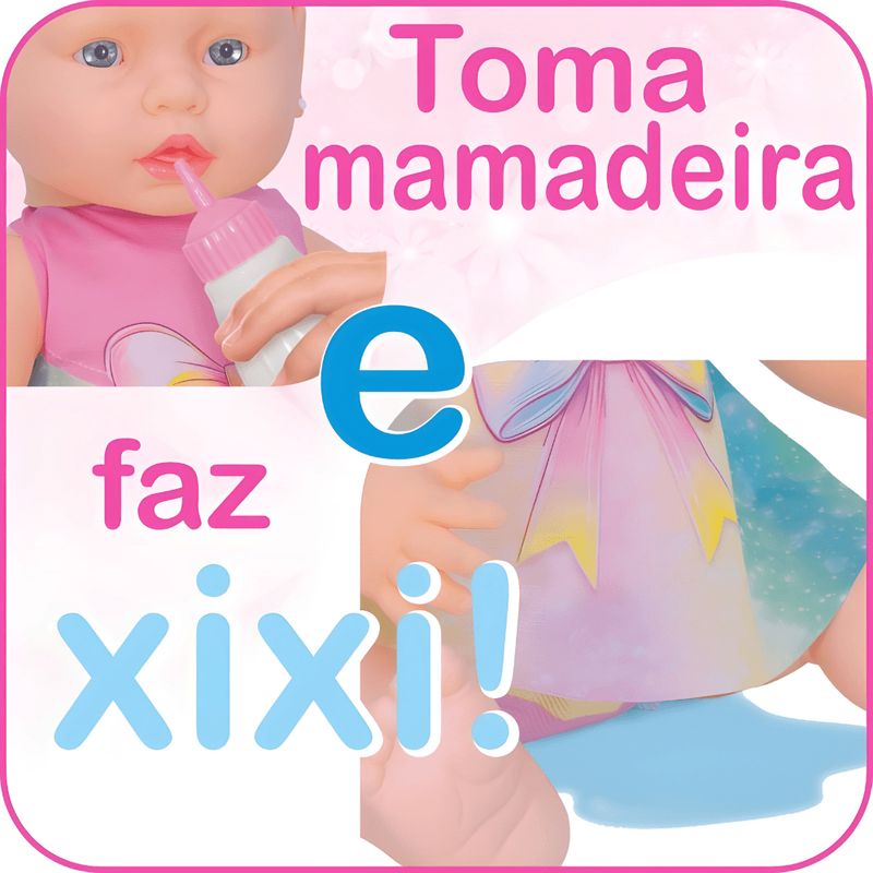 A Boneca Baby Pink Mama e Faz Xixi é a companheira perfeita para brincar de cuidar. Ela permite que a criança viva momentos cheios de imaginação, aprendendo sobre carinho e responsabilidade de um jeito leve e divertido. Basta dar a mamadeira para ela e, depois, levá-la ao penico — como um bebê de verdade! Uma brincadeira simples que estimula a empatia e o senso de cuidado, tornando cada momento especial. Ideal para crianças que adoram histórias de faz de conta e querem ter sua primeira experiência como “mamãe” ou “papai” de brinquedo.