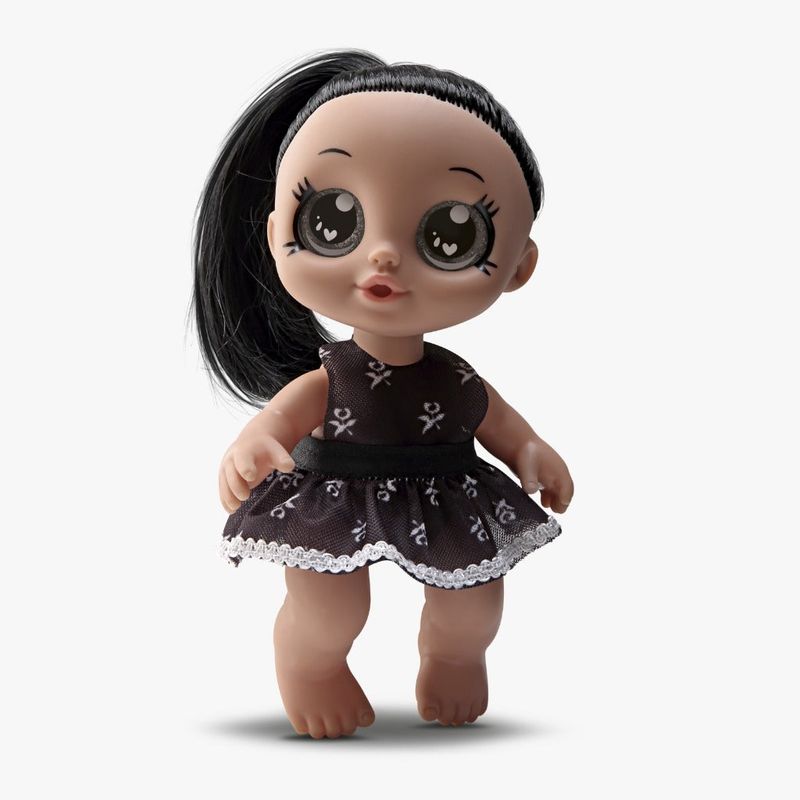 Uma bonequinha bem diferente, com seu jeito sombrio que a torna envolvente. Como uma boneca sombria e fofa, ela transforma diversão em algo mágico e arrepiante. Seus olhos curiosos brilham com mistério, fazendo dela a pequena e aforável do lado sombrio. Vem com pentinho, escova e espelho.