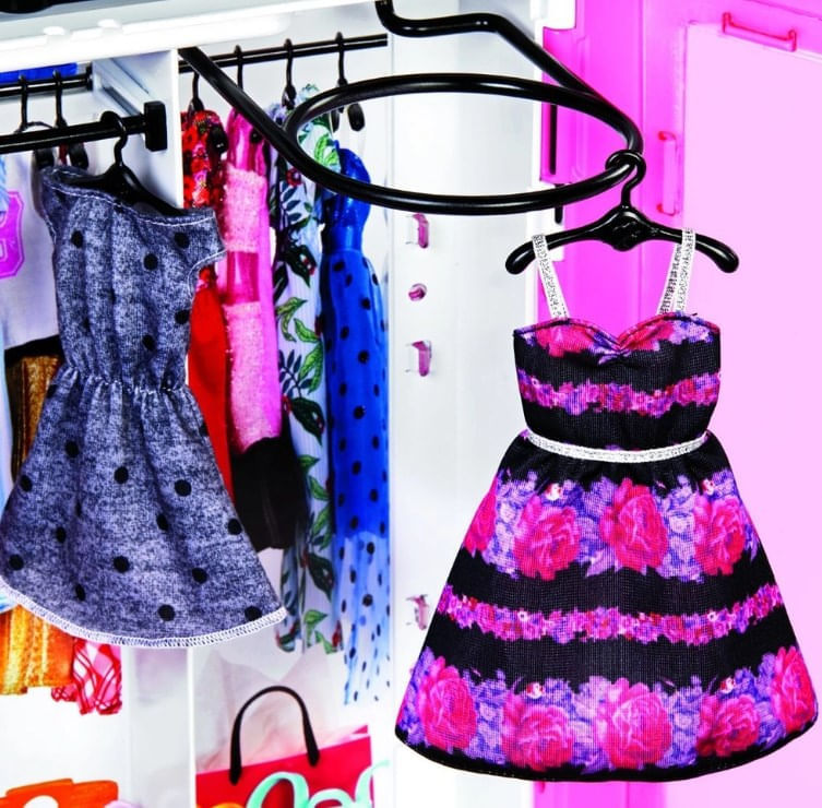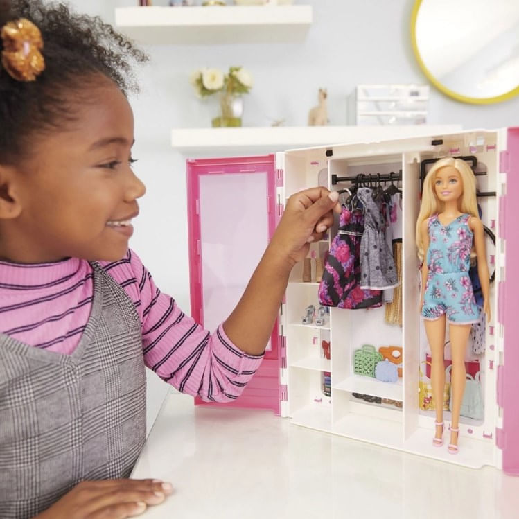 Com a Barbie closet de luxo as crianças se transportarão para um mundo de possibilidades! Decorado com o estilo próprio da Barbie, o armário rosa possui portas transparentes para ver tudo o que há dentro do guarda-roupa. Para começar a diversão, as crianças poderão vestir a Barbie para combinar com seu estilo ou história. Depois, é só escolher outras combinações e levar a diversão a qualquer lugar. Seis cabides incluídos ajudam a manter as roupas perfeitas. E tem mais! Um suporte dobrável ajuda a simular a diversão de se vestir. Inclui armário portátil, boneca barbie vestindo roupas e sapatos da moda, dois vestidos, dois colares, duas bolsas, dois pares de sapatos adicionais e seis cabides
