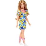 Inclui a boneca Barbie Fashionistas usando roupas e acessórios.