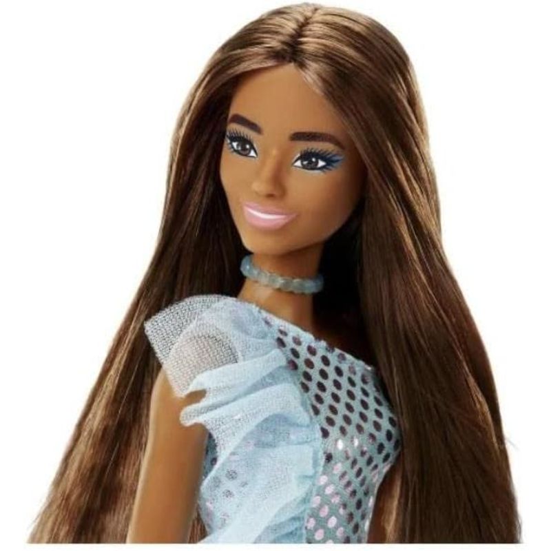 As bonecas Barbie HJR93 e HJR95 fazem parte da coleção Barbie Glitz, conhecida por seu visual moderno e cheio de brilho. Cada uma veste um lindo vestido metálico, com corte elegante e detalhes delicados em babado translúcido, perfeitos para qualquer ocasião especial. O modelo HJR93 usa um vestido roxo com estampa de bolinhas e cabelo loiro liso, enquanto o modelo HJR95 traz um visual com vestido verde-azulado metálico e cabelo castanho. Ambas acompanham acessórios combinando, como colar tipo choker e sapatos de salto alto, completando um visual glamouroso e sofisticado. Indicadas para crianças a partir de 3 anos, as Barbies dessa linha estimulam a imaginação e a criatividade, inspirando momentos de moda e diversão.