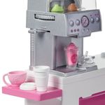 Explore um mundo de diversão com a Cafeteria da Barbie®! Se você adora preparar café e smoothies, então vai se deliciar nesta cafeteria! A Cafeteria da Barbie® inclui uma boneca Barbie® com uma bonita camisa listrada preta e branca e um avental rosa com um penteado esportivo. E a boneca Barbie® está pronta para servir os seus clientes! A cafeteria tem um cardápio em placa e máquina para fazer café, smoothies e chá (gire o botão da máquina para escolher os sabores favoritos das bebidas). Os acessórios adicionais incluem uma jarra de leite, xarope de chocolate, xícaras de café, canecas de smoothie, uma xícara de chá e muito mais. Há também uma seção com doces, incluindo bolos, cupcakes e biscoitos; uma seção fria que comporta 2 garrafas de água; e uma seção de lanches e bar. Depois que o cliente fizer seu pedido e ele tiver sido preparado, a boneca Barbie® pode cobrá-lo no caixa! A cafeteria tem mais de 20 peças para contar histórias (algumas têm recurso de fixação que permite que a boneca Barbie® segure o item). As crianças vão adorar as infinitas possibilidades de expressão criativa e diversão na cafeteria! É um excelente presente para crianças a partir de 3 anos, especialmente aquelas que adoram fazer café, servir doces e aprender habilidades culinárias! Os bonecos não ficam em pé sozinhos. Cores e decorações podem variar