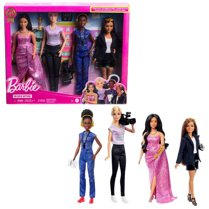 A boneca Barbie celebra mais de 250 profissões com um conjunto de Carreiras de grande sucesso, apresentando quatro papéis de cineastas juntos. Destacando posições em que as mulheres estão sub-representadas, o conjunto colecionável Women in Film inclui uma executiva de estúdio, diretora, diretora de fotografia e estrela de cinema. Cada boneca apresenta uma carreira única na produção de filmes com roupas profissionais e acessórios relacionados ao seu trabalho. Inspirando a imaginação com infinitas possibilidades, a Barbie Women in Film é um ótimo presente para crianças a partir de 3 anos explorarem o mundo e seguirem seus sonhos! As bonecas não podem ficar sozinhas. Cores e decorações podem variar.