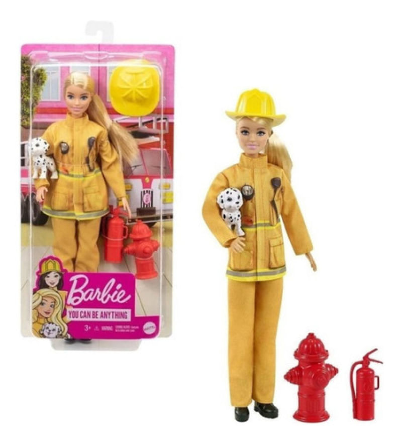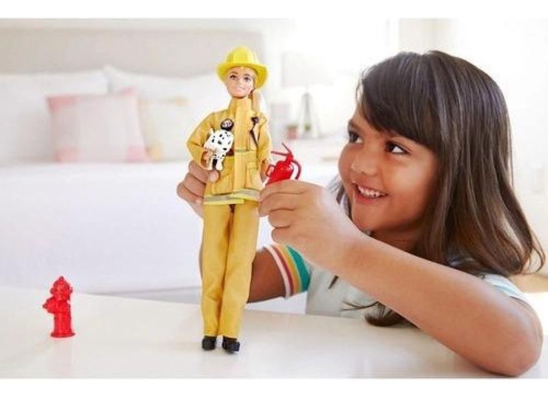BONECOS E BONECASBONECASBONECA ARTICULADABoneca Barbie Profissões Loira Bombeira Deluxe Cachorrinho