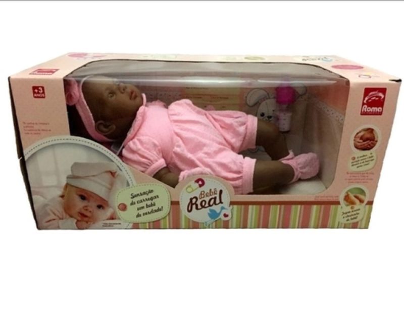 Simplesmente um encanto de Boneca! A Bebê Real é feita em vinil especial e com uma cor de um bebê recém nascido. Rica em detalhes, como dobrinhas da pele e costura, possui o peso ideal para brincar. Acompanha uma Certidão de Nascimento para você registrar a sua filhinha e uma incrível mamadeira mágica, que funciona da seguinte maneira: você vira a mamadeira de ponta cabeça e o liquido desaparece como mágica. Uma incrível opção, boa diversão!