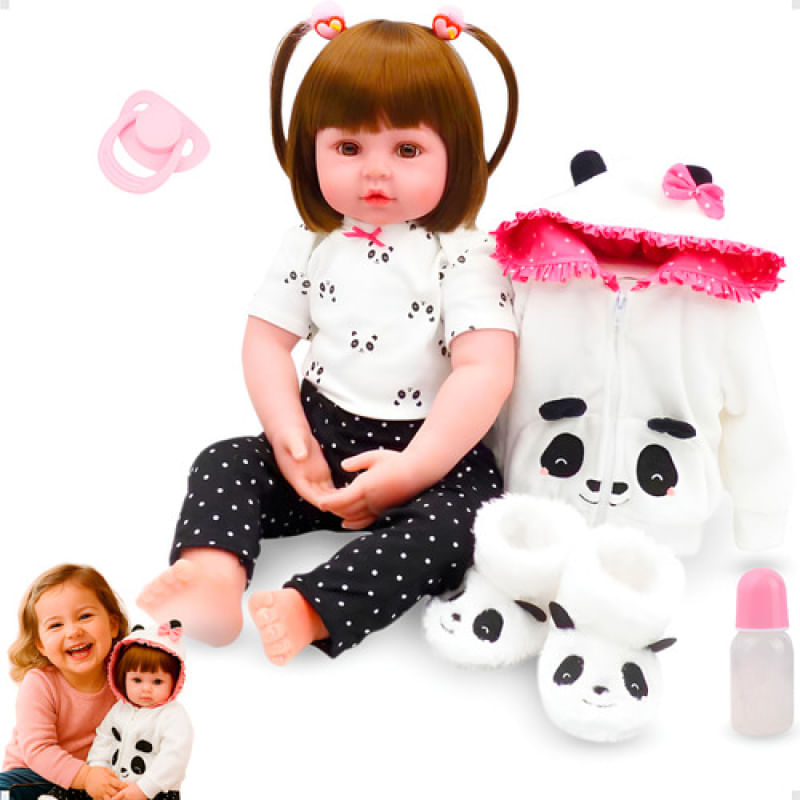 CONTEÚDO DA EMBALAGEM: 1X BONECA 100% VINIL , 1 CHUPETA, 1 MAMADEIRA, 1 CERTIDÃO DE NASCIMENTO, 1 CARTERINAHA DE VACINAÇÃO E 1 MANUAL DE CUIDADOS FUNCIONALIDADES DO PRODUTO: BONECA PARA AS CRIANÇAS DESENVOLVEREM SUAS HABILIDADES, CRIATIVIDADE E COORDENAÇÃO MOTORA, ESSAS BONECAS VÃO MUITO ALÉM DE ENCANTAR E DIVERTIR. IDADE RECOMENDADA: INDICADO PARA CRIANÇAS MAIORES DE 3 ANOS MEDIDAS DO PRODUTO EM CM (LxAxP): 20,0cm 43,0cm 10,5cm MEDIDAS DA EMBALAGEM EM CM (LxAxP): 28,0cm 48,0cm 16,0cm CERTIFICADO: 00717/2021-BRINQ-2 REGISTRO INMETRO: 004975/2021