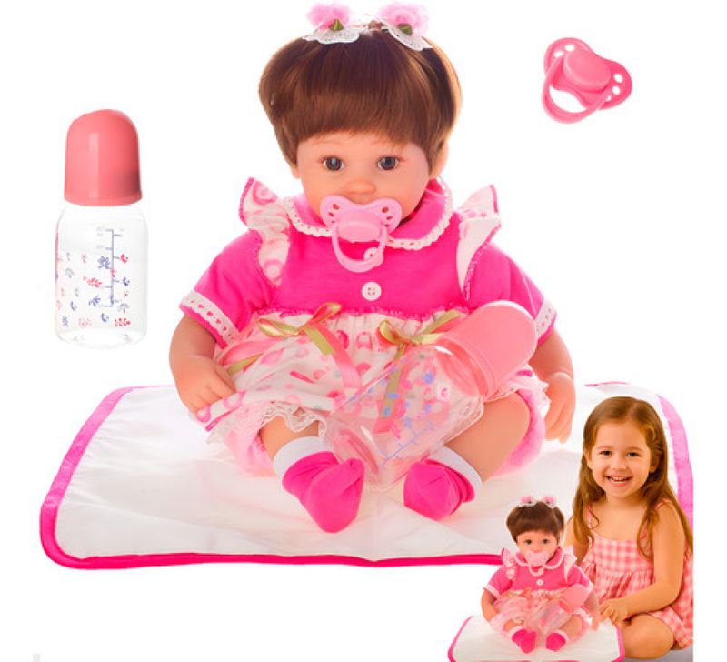CONTEÚDO DA EMBALAGEM: 1X BONECA 100% VINIL , 1 CHUPETA, 1 MAMADEIRA, 1 CERTIDÃO DE NASCIMENTO, 1 CARTERINAHA DE VACINAÇÃO E 1 MANUAL DE CUIDADOS FUNCIONALIDADES DO PRODUTO: BONECA PARA AS CRIANÇAS DESENVOLVEREM SUAS HABILIDADES, CRIATIVIDADE E COORDENAÇÃO MOTORA, ESSAS BONECAS VÃO MUITO ALÉM DE ENCANTAR E DIVERTIR. IDADE RECOMENDADA: INDICADO PARA CRIANÇAS MAIORES DE 3 ANOS MEDIDAS DO PRODUTO EM CM (LxAxP): 20,0cm 40,0cm 12,0cm MEDIDAS DA EMBALAGEM EM CM (LxAxP): 28,0cm 48,0cm 16,0cm CERTIFICADO: 00717/2021-BRINQ-2 REGISTRO INMETRO: 004975/2021