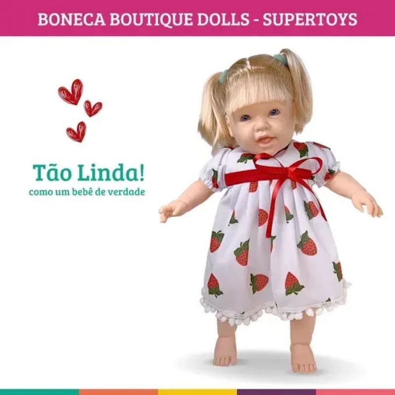 A Boneca Boutique Dolls com Cabelo Loira é tão linda e simpática que irá conquistar seu coração! Possui a cabeça, braços e pernas produzidas em vinil enquanto seu corpo é de fofinho de fibra atóxica, perfeita para abraçar Possui cabelo com franjinha para pentear e cuidar de sua amiguinha!