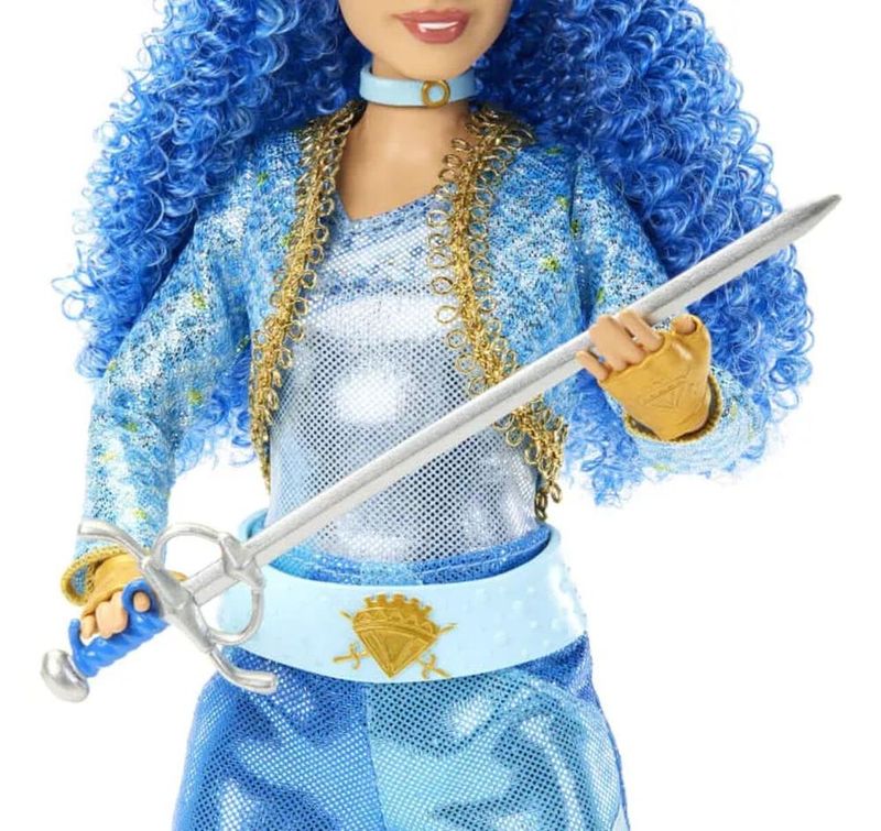 Aviso: Cores e tons podem variar, imagens meramente ilustrativas!!! Luta pelo que está certo com esta boneca da Princesa Chloe Charming, Filha da Cinderela, do filme da Disney Descendentes: A Ascensão de Copas! Com os seu cabelo ondulado azul brilhante e a sua roupa icônica, esta boneca fashion parece mesmo a campeã real que é no filme. Ela dobra os braços, cotovelos, pulsos e joelhos para que ela possa arrasar com seu acessório de espada incluído e posar como a princesa heroica que ela é. Contém: 1 Boneca e Acessório Idade: 4 anos Marca: Mattel Franquia: Disney Decendentes