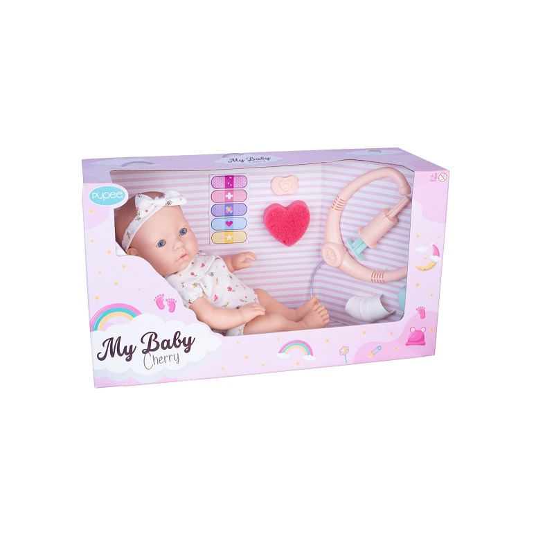 A Boneca My Baby Cherry – Machucadinho é a escolha perfeita para as crianças que adoram brincar de cuidar e mimar suas bonecas com muito carinho! Com uma aparência super fofa, Cherry vem com um machucadinho na testa e a diversão está em cuidar dela com muito amor!