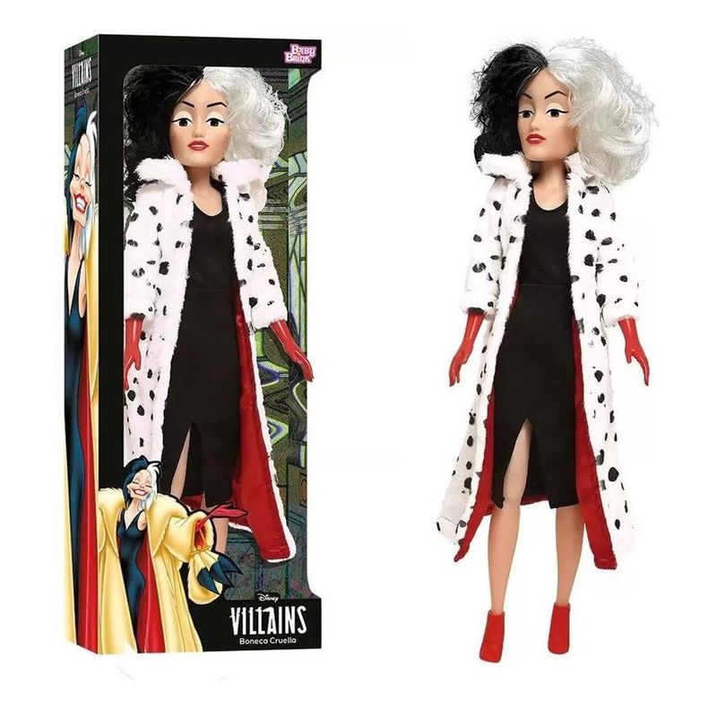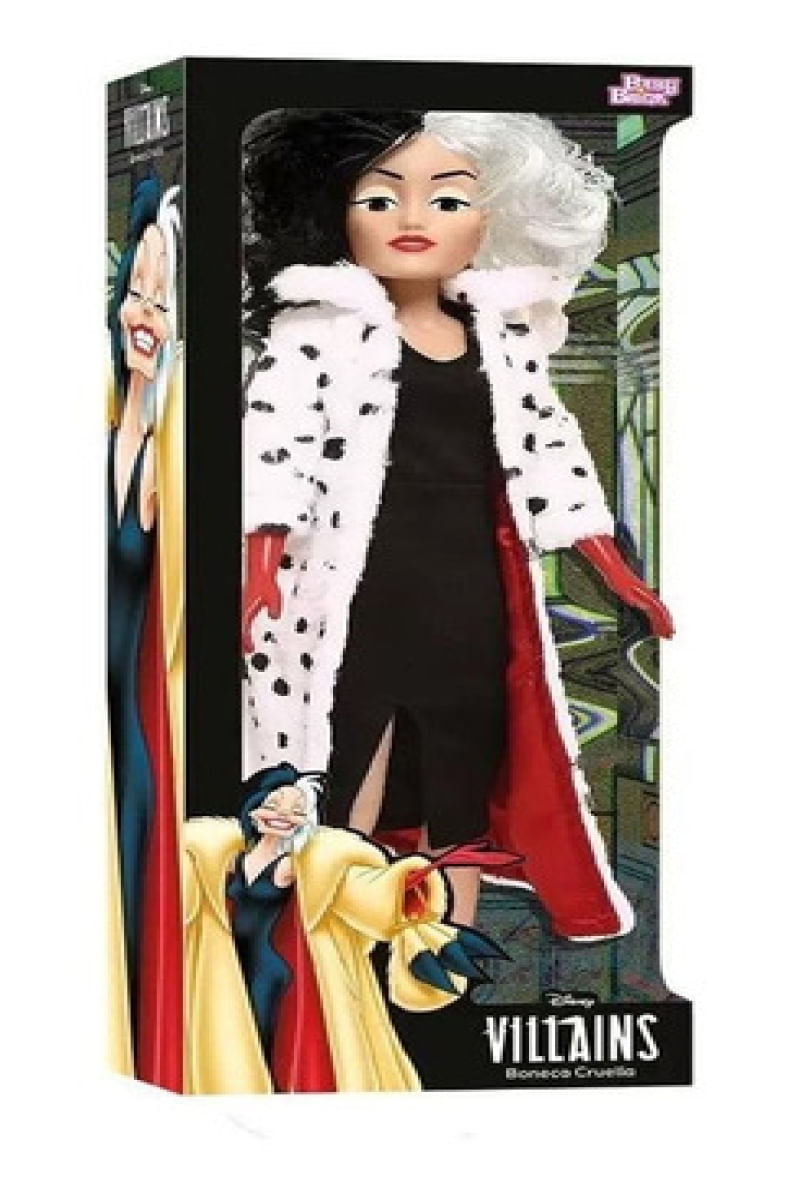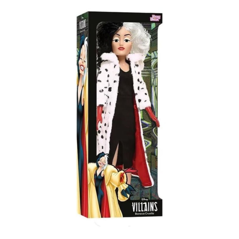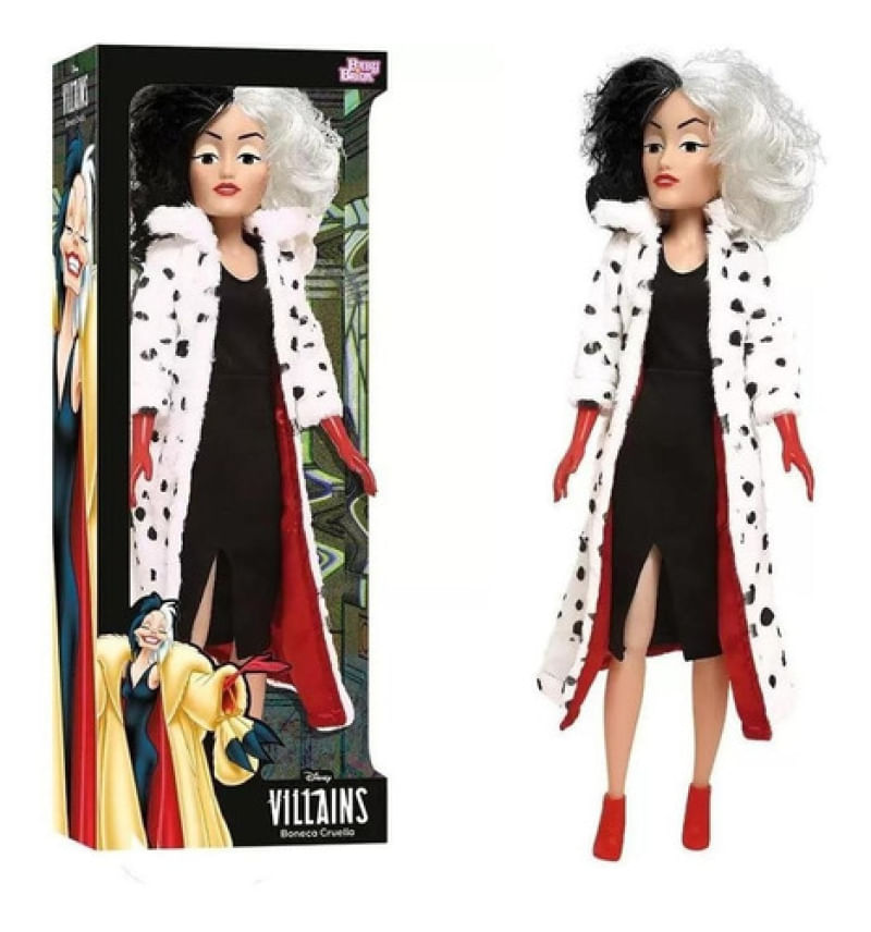Bonecas e bonecos são grandes companheiros em todas as fases da criança. Além de promover o afeto e boas lembranças, essa brincadeira também é cheia de benefícios. Por exemplo: ajuda a estimular habilidades sociais. Brincar com bonecos também desenvolve a inteligência emocional, coordenação motora, imaginação, criatividade, percepção de movimento, entre outros. E claro que pensando nisso a Baby Brink apresenta a boneca Cruella. Uma boneca da série Disney Vilãs, com as vilãs mais conhecidas dos desenhos da Disney.