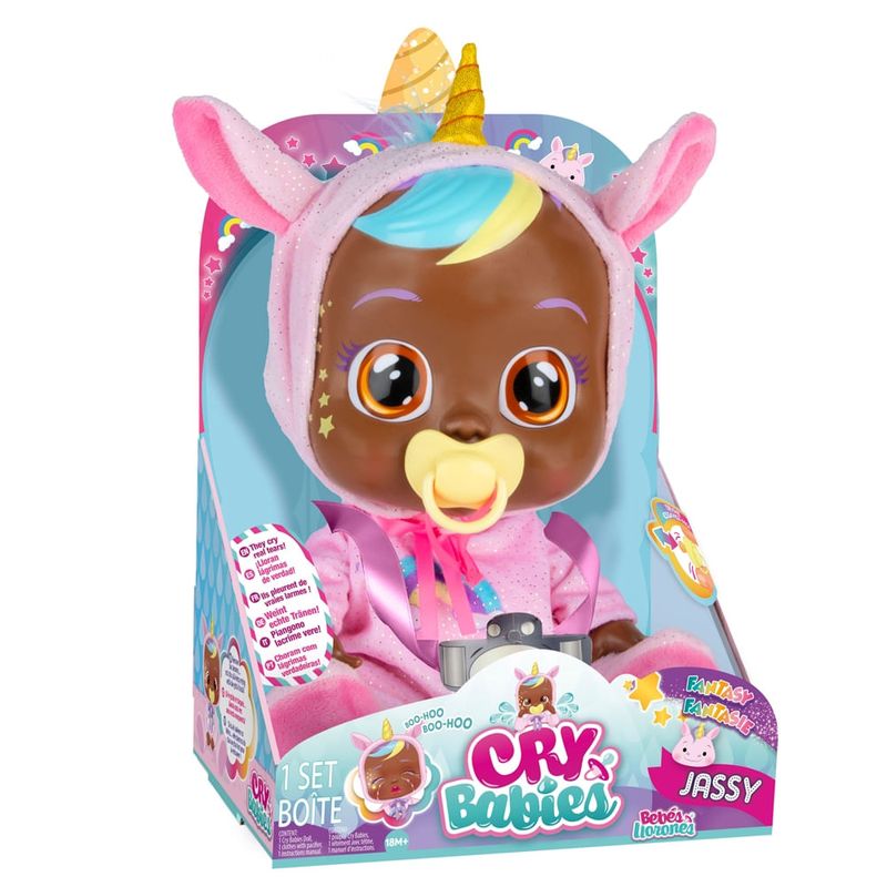 A Jassy torna a brincadeira de boneca muito mais emocionante e divertida. Quando você tira a chupeta da boca dela, saem lágrimas dos olhos e são emitidos sons parecidos com o de um bebê de verdade.