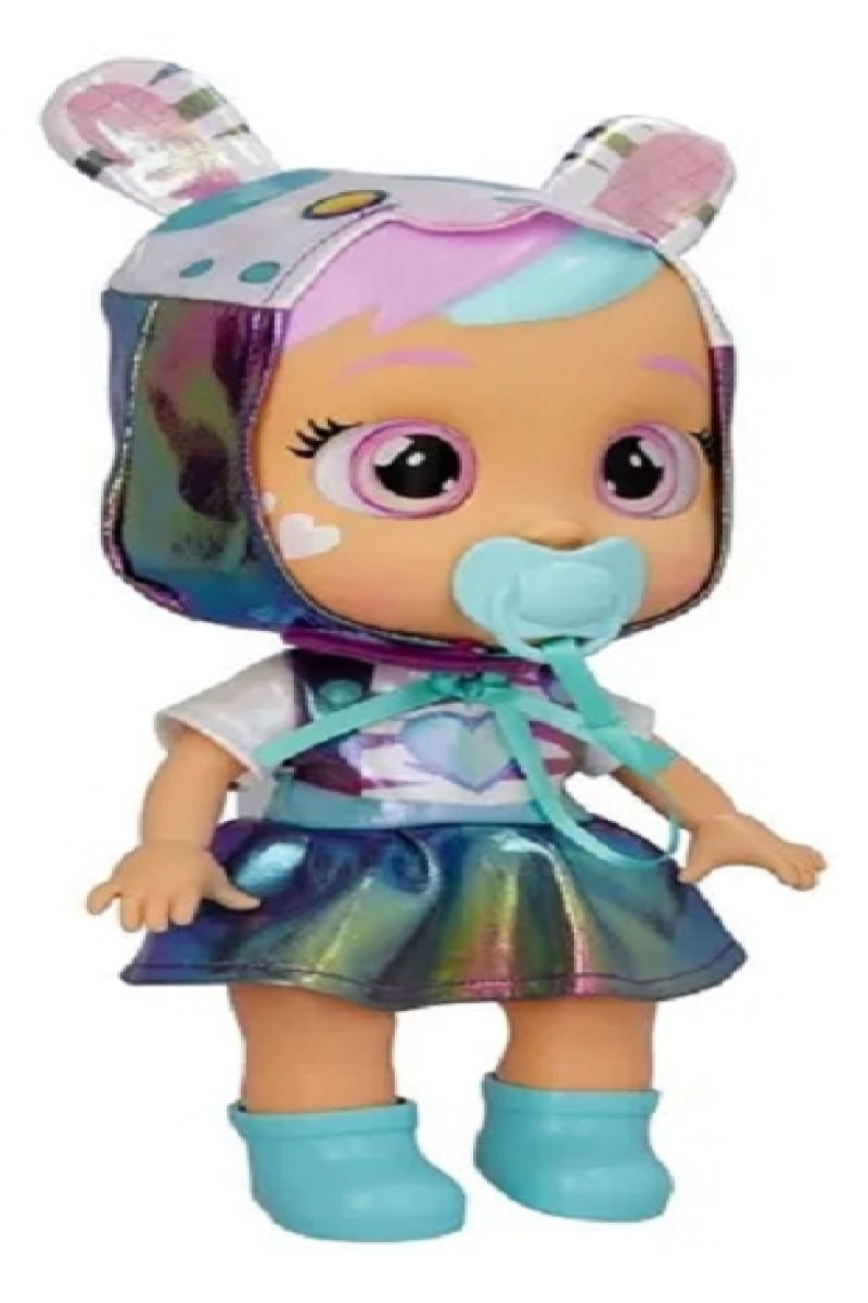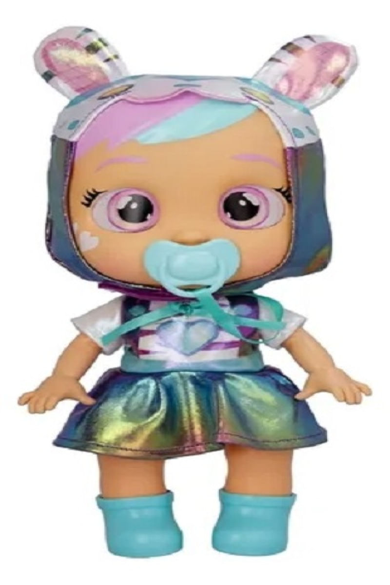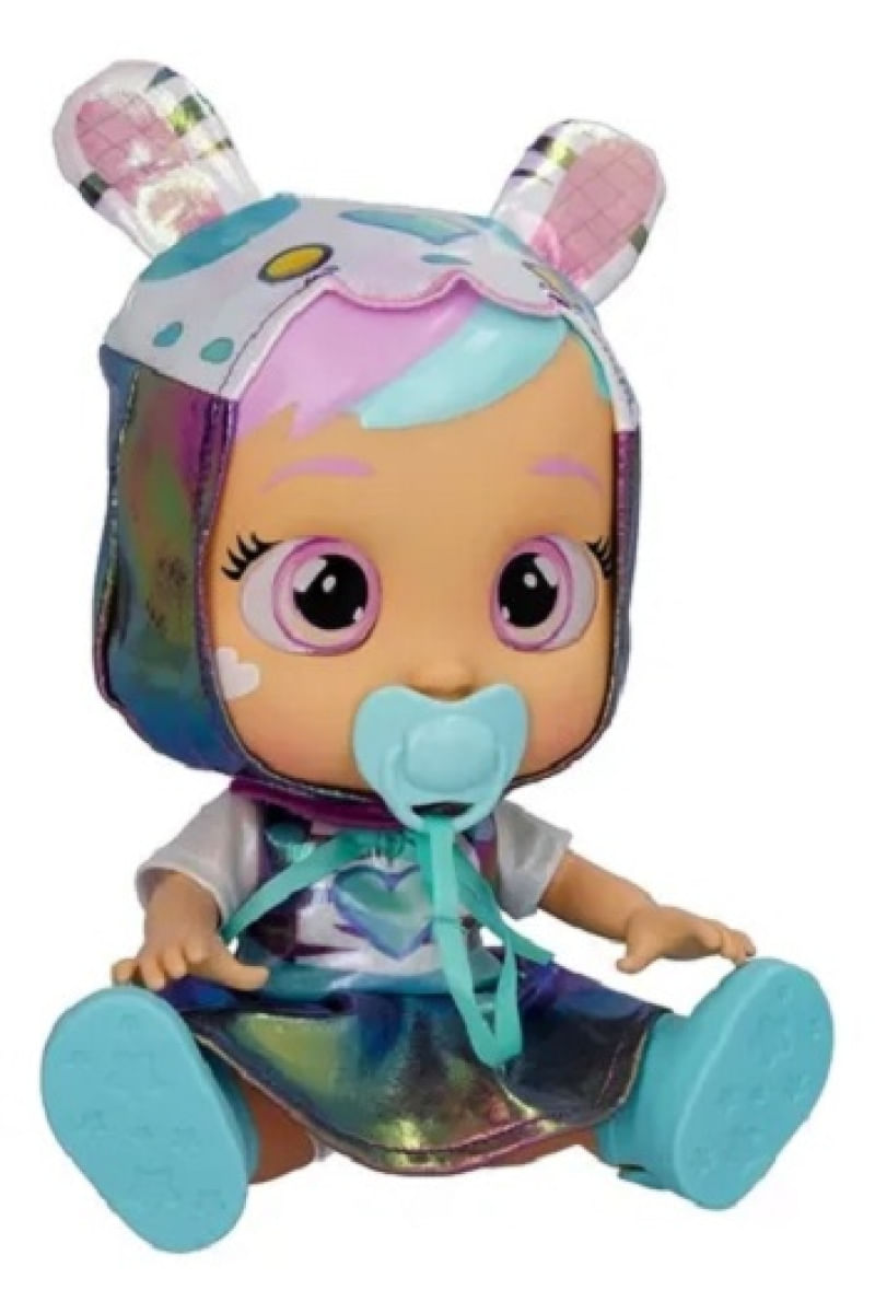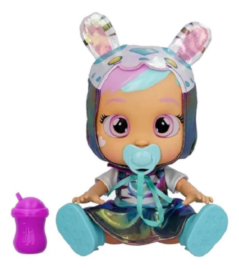 Dê a ela uma chupeta ou uma mamadeira para evitar que ela chore. Quando você tira a chupeta dela, ela chora lágrimas de verdade e seus olhos brilham como estrelas! Veja seus olhos brilharem como estrelas tão brilhantes quanto o céu noturno. Ela emite sons de choro! Contém: 01 boneca, 01 chupeta e 01 manual de instrução. Tamanho da boneca: 23 cm de altura sentada Utiliza: 2 pilhas AAA Boneca mede 23 cm de altura e 18 cm comprimento