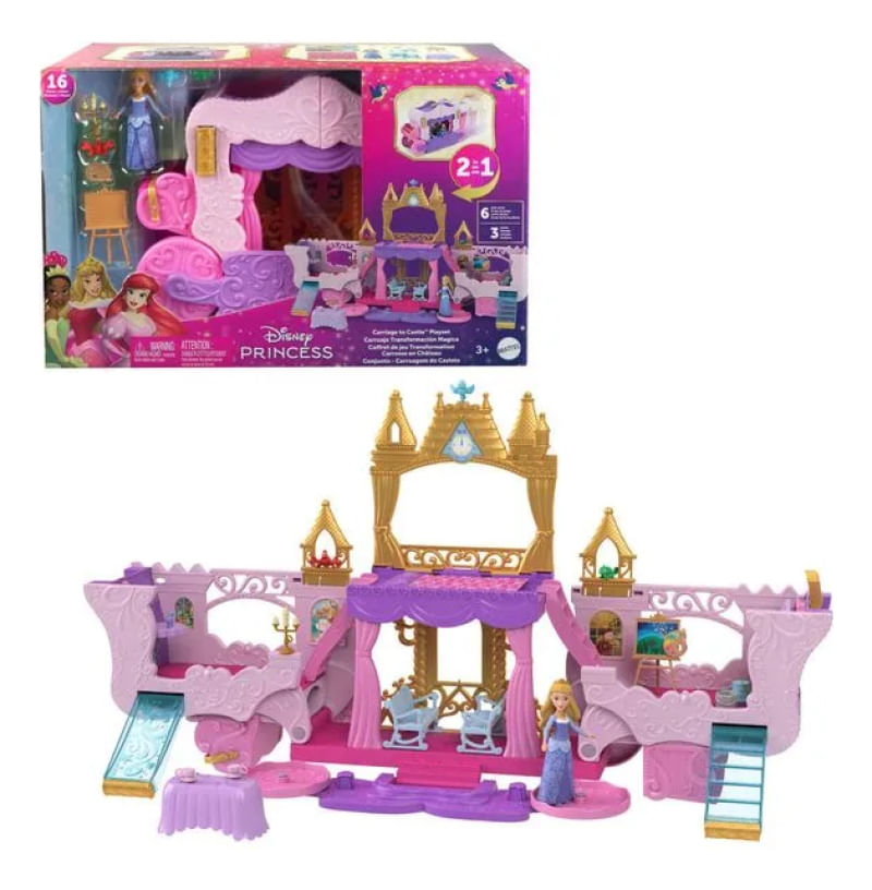Disney Princesa Carruagem Transformação Mágica - MattelSonhos encantados se tornam realidade com o Disney Princesa Carruagem Transformação Mágica, que se transforma em um castelo! A carruagem tem rodas e espaço para até 4 bonecas da Disney Princesa, Aurora está incluída. A carruagem então se transforma magicamente em um castelo, com 3 níveis, 6 áreas de jogo e mais de 10 móveis e peças adicionais. Idade recomendada: A partir de 3 anos. Selo Inmetro: 00128-05A.Diferenciais:Transformação mágica da carruagem em casteloEspaço para até 4 bonecas Disney Princesa.Inclui boneca Aurora e 4 amigos personagens.3 níveis e 6 áreas de jogo no castelo.Mais de 10 móveis e peças adicionais.Mais sobre o Produto:Ideal para fãs das Princesas Disney.Estimula a imaginação e a criatividade das crianças.Perfeito para criar histórias mágicas e aventuras encantadas.Dicas de Uso:Estimule a criatividade das crianças ao recriarem as histórias das princesas da Disney com este conjunto.Explore todas as áreas de brincadeira oferecidas pelo castelo para diversão garantida.Perfeito para presentear os fãs das princesas Disney e proporcionar momentos mágicos e inesquecíveis.Ficha Técnica:Marca: Mattel;Nome do produto: Disney Princesa Carruagem Transformação Mágica;Idade recomendada: A partir de 3 anos;Selo Inmetro: 00128-05A;Contém: 1 conjunto de carruagem para castelo, 1 boneca pequena, 4 figuras de personagens e 12 acessórios.