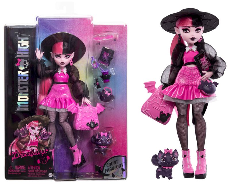 Boneca Draculaura Monster High Fabricante: Mattel. Coleção: Boneca Monster High - Pet e Acessórios Uma noite assustadora aguarda essas bonecas Monster High! Elas usam roupas assustadoramente impressionantes e vêm com acessórios, que aumentam a diversão assustadora. Crianças de 4 anos ou mais vão adorar brincar com todos os modelos de bonecas! Cada um vendido separadamente, sujeito à disponibilidade. Totalmente articulado. As bonecas não ficam em pé sozinhas. Cores e decorações podem variar. *Modelos Vendidos Separadamente