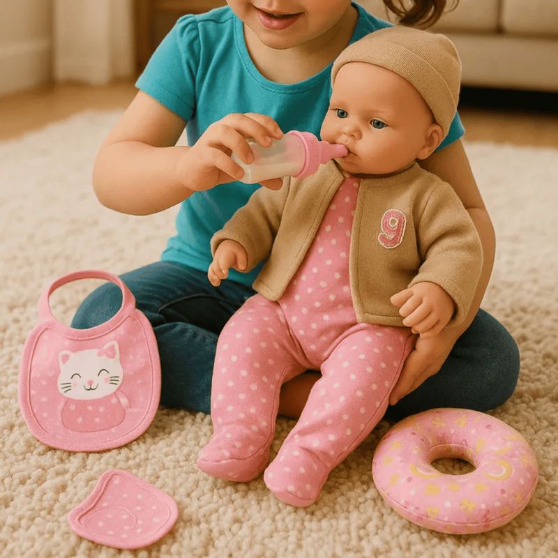 A Boneca Fiorella da Cotiplás chegou para encantar! Com traços delicados e cheios de ternura, ela vem acompanhada de 1 mamadeira, 1 travesseiro de pescoço e 1 ursinho fofo, tornando a brincadeira ainda mais completa. Ideal para crianças a partir de 3 anos, é perfeita para estimular o cuidado, a imaginação e o afeto durante a brincadeira!