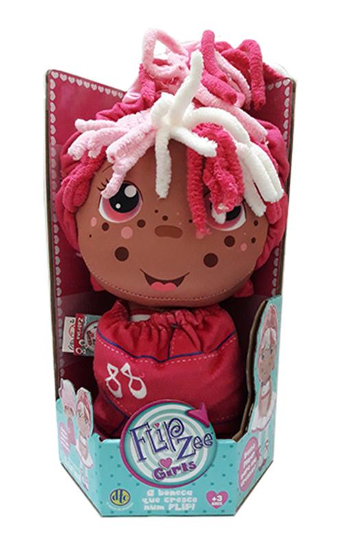 Flip Zee Girls sao bonecas recheadas que tem duas identidades diferentes. As bonecas comecam como um bebe ou outro personagem, como um gato e lancando seus chapeus, eles se transformam em uma grande boneca. Sua primeira roupa da-lhes a personalidade de um bebe, mas quando eles sao lancados de dentro para fora, eles se transformam em uma boneca maior que seu filho vai adorar. Eles tem cores diferentes de cabelo e roupas para que todas as meninas possam desfrutar. Oh ! eles crescem tao rapido ... Ontem ela era um bebe! Basta Flipar para ele crescer! O seu rostinho se transforma quando ela cresce e uma grande Fofura !! ESPECIFICACOES: -Nao recomendavel para menores de 3 Anos . -Composicao:Tecido 100% Poliester -Contem: 1 Boneca - Zoey MODO DE USAR : Levante a touca e vire-a para tras da cabeca da boneca para revelar o seu rostinho e os cabelos da boneca crescida . Puxe a boneca do " Mantinho " e vire-o para tras do corpo da boneca revelar os bracinhos e as pernas . AS CORES DO PRODUTO PODEM VARIAR.