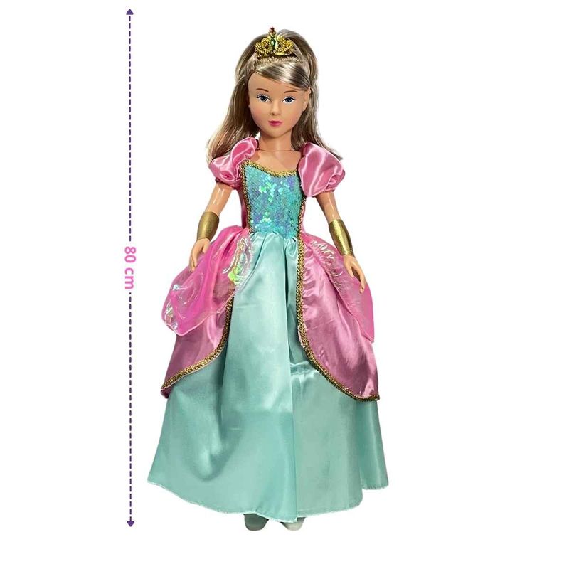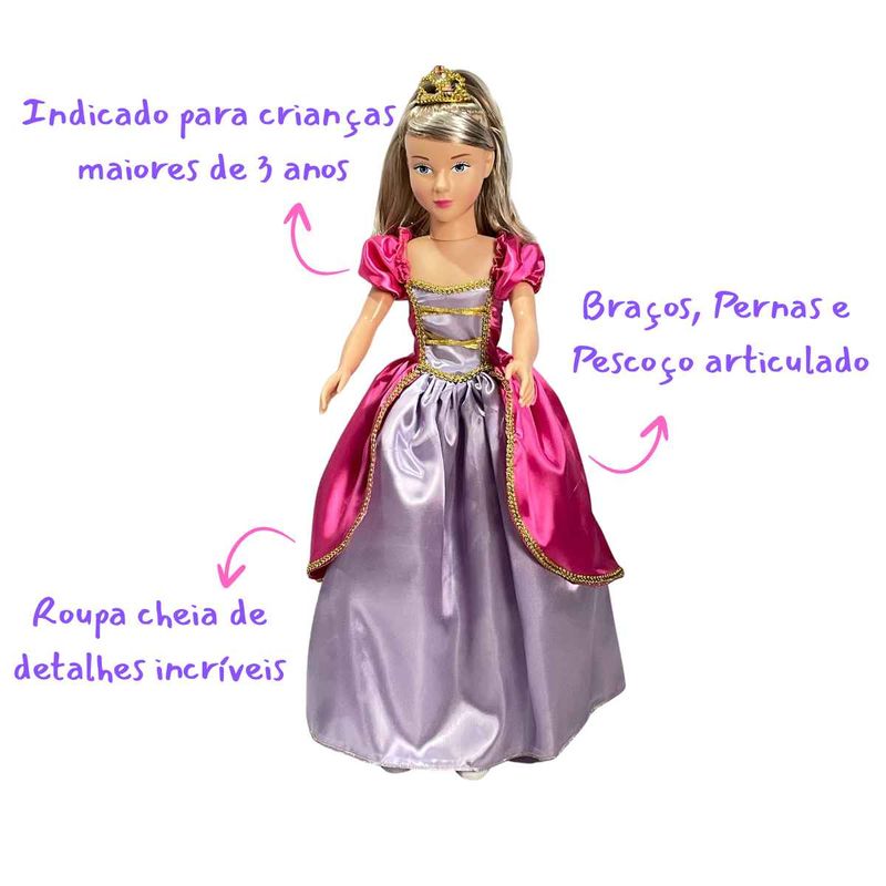 A Boneca Articulada Isabelly mede aproximadamente 80cm, tem detalhes delicados como sapatinhos e tiara removíveis. Essa boneca incrível tem o tamanho perfeito para acompanhar a criançada em suas brincadeiras e aventuras.